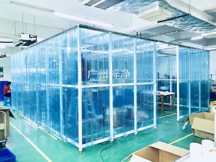 洁净棚采用工业铝材(或不锈钢方通、铁方通喷塑)作为框架,风机滤网机组(FFU)送风,四周悬挂防静电垂帘(或钢化玻璃),其内部净化级别可达到100-10000级。适用于操作区内局部净化级别要求高的区域。